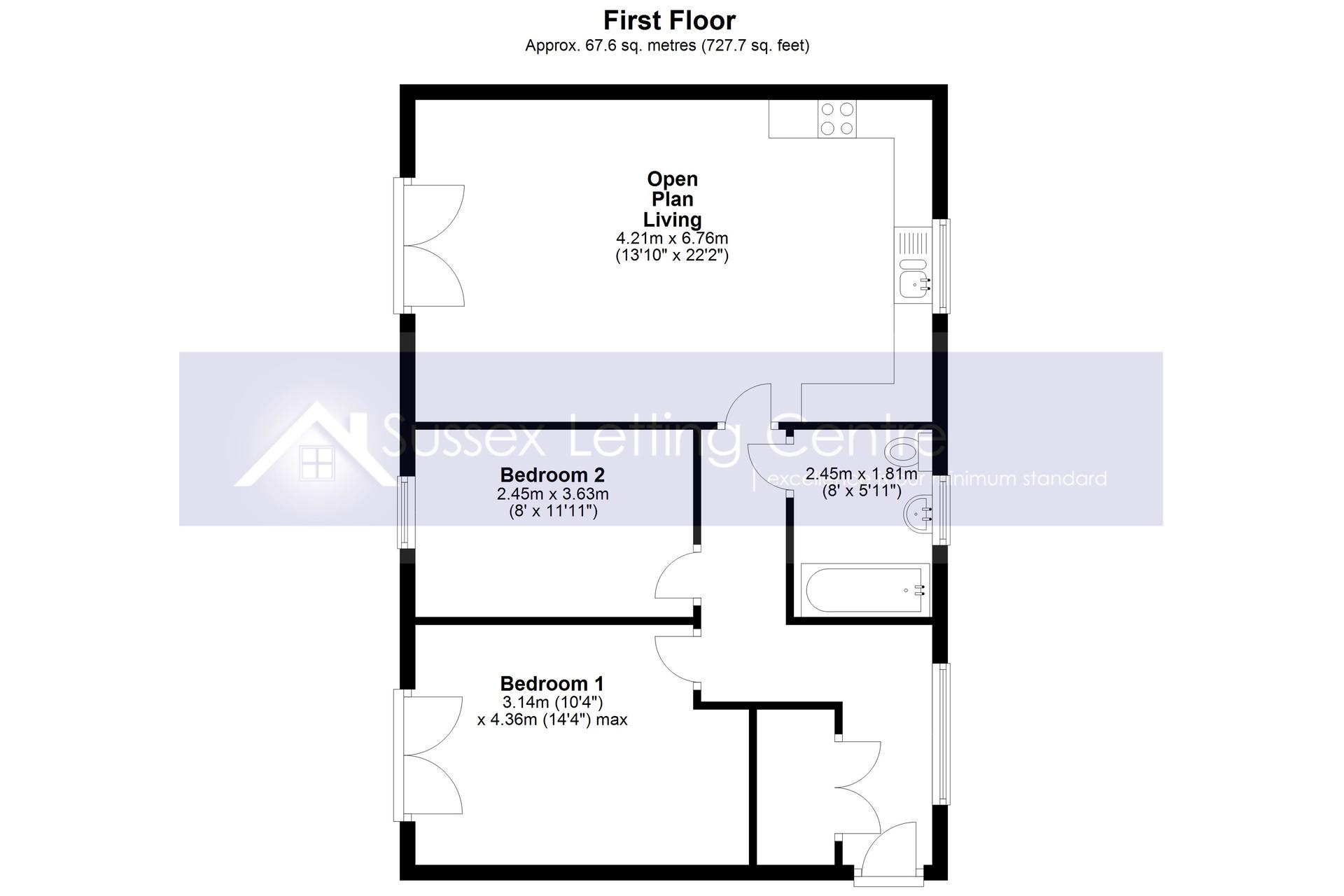 In brief, the property comprises of: Secure entry, stairs to the first floor, bright entrance hall with large storage cupboard, modern, open plan kitchen with integrated appliances which include Fridge-Freezer/Washer-Dryer/Dishwasher, good size lounge with Juliet balcony, main bedroom with sliding door wardrobes & Juliet balcony, second bedroom, spacious modern bathroom with power shower over bath.